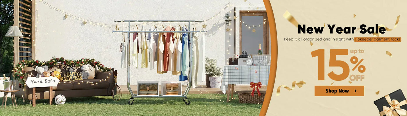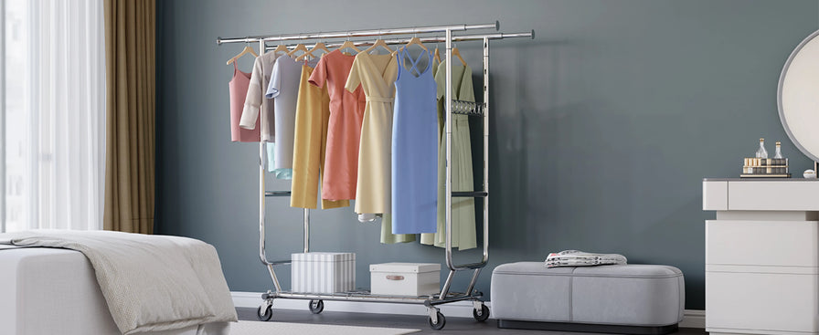 HOKEEPER Double Rod Garment Rack with Wheels