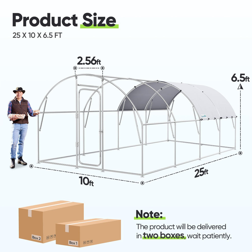 Quictent Arched Metal Chicken Coop with Perch & Swing - 25'x10'x6.5' is backordered and will ship as soon as it is back in stock.