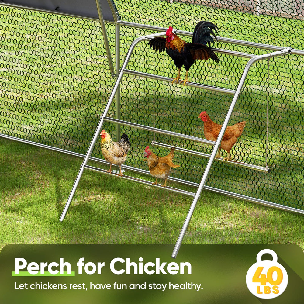 【Built-In Roosting Ladder & Swing Set】- Features a semi-detached roosting ladder for extra perching space (promoting exercise and hygiene) plus an enrichment swing. Delivers exceptional value by combining affordability with poultry comfort.