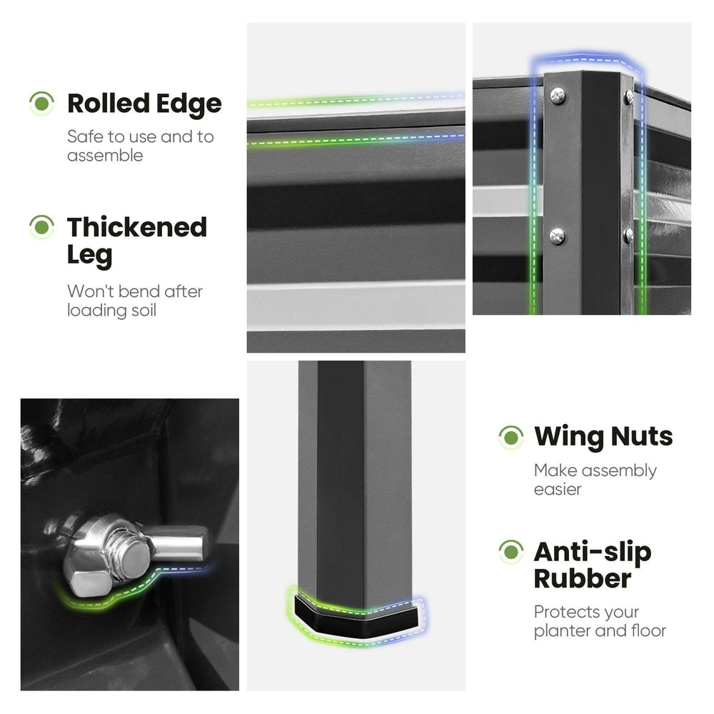Raised Planter Box: The garden bed features a raised design, providing easy access and eliminating the need for bending or kneeling while gardening. This makes it comfortable for people of all ages and abilities.