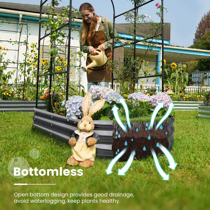 【Safe Rolled Edges】The edges of the metal raised garden beds are meticulously crafted with a rolled edge process, eliminating sharp edges to ensure your hands stay safe from cuts during assembly and planting, letting you safely enjoy the pleasure of gardening.