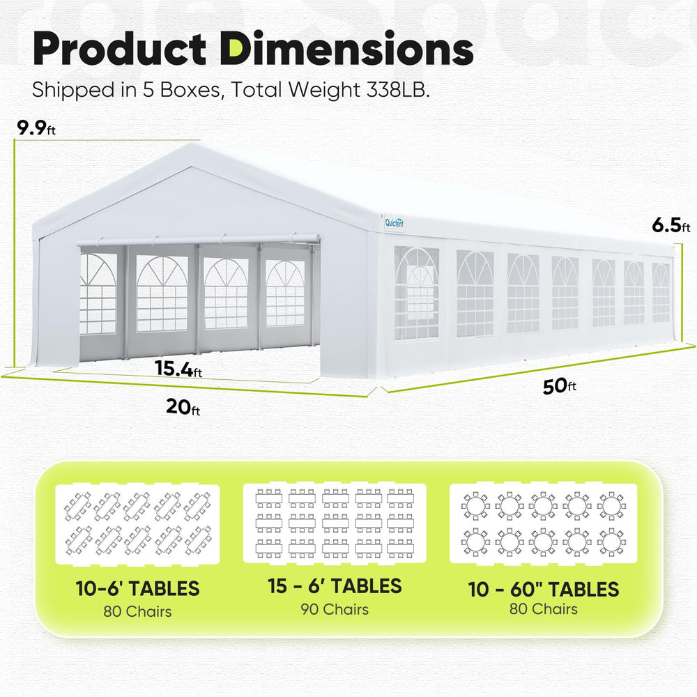 【Multiple Usage】Spacious 20x50ft tent accommodates 15+ tables and 90-100 guests - perfect for weddings, graduations, corporate events, and large celebrations.