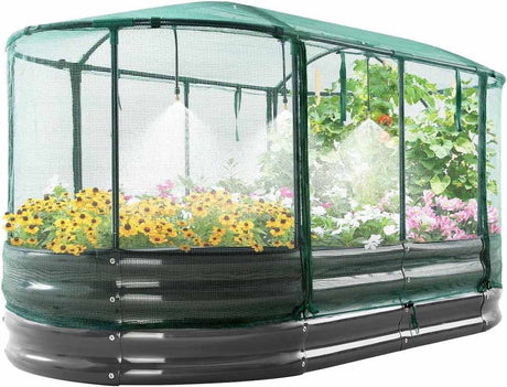 Quictent 8'x4'x2' Galvanized Raised Garden Bed with Cover - Green