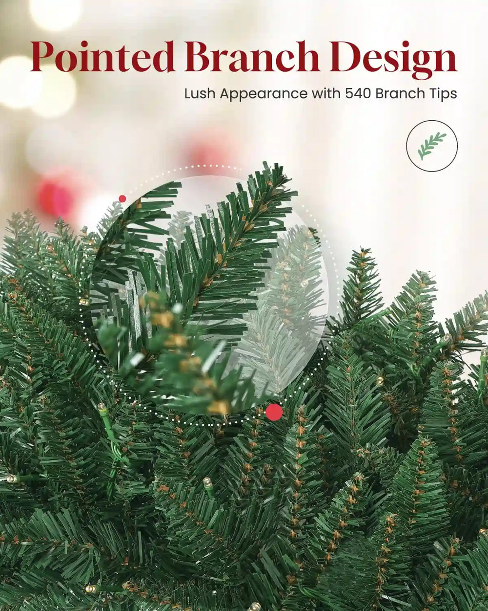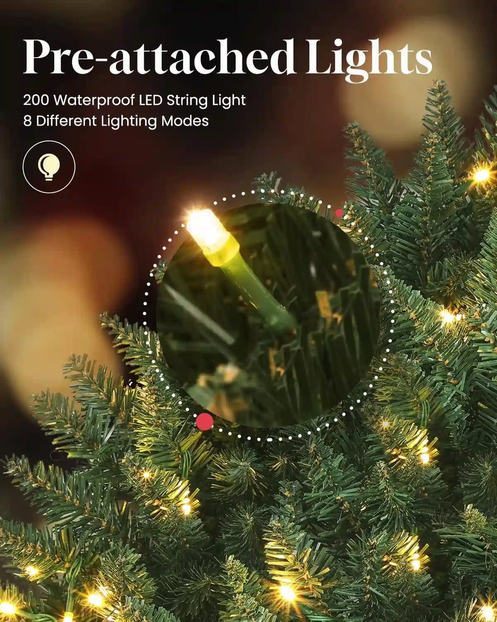 200/300 LED LIGHTS . MaxLead Pre-lit christmas wreath features 200/300 energy-efficient LED lights, which provide a stunning and vibrant glow. The LED lights are long-lasting and consume less energy, making them an eco-friendly choice for your Christmas decorations.