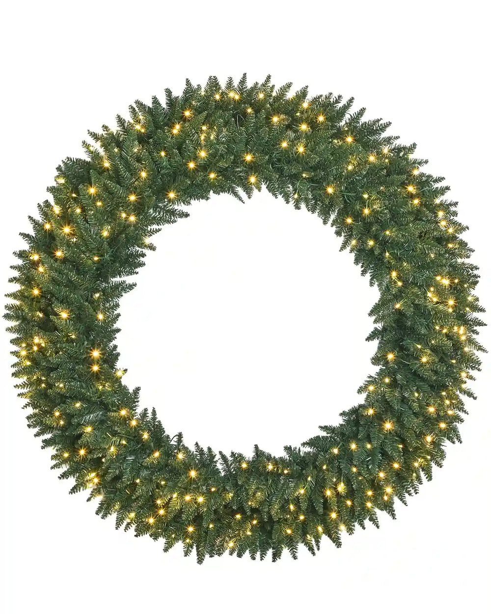 EXTRA LARGE DESIGN. MaxLead 48"/60" Christmas wreath designed with a Norwood Fir branch base. Hundreds of easy-to-fluff PVC branches create a large and eye-catching decoration that will instantly enhance the festive ambiance of any space. Its size ensures that it becomes the focal point of your holiday decor, creating a warm and welcoming atmosphere.